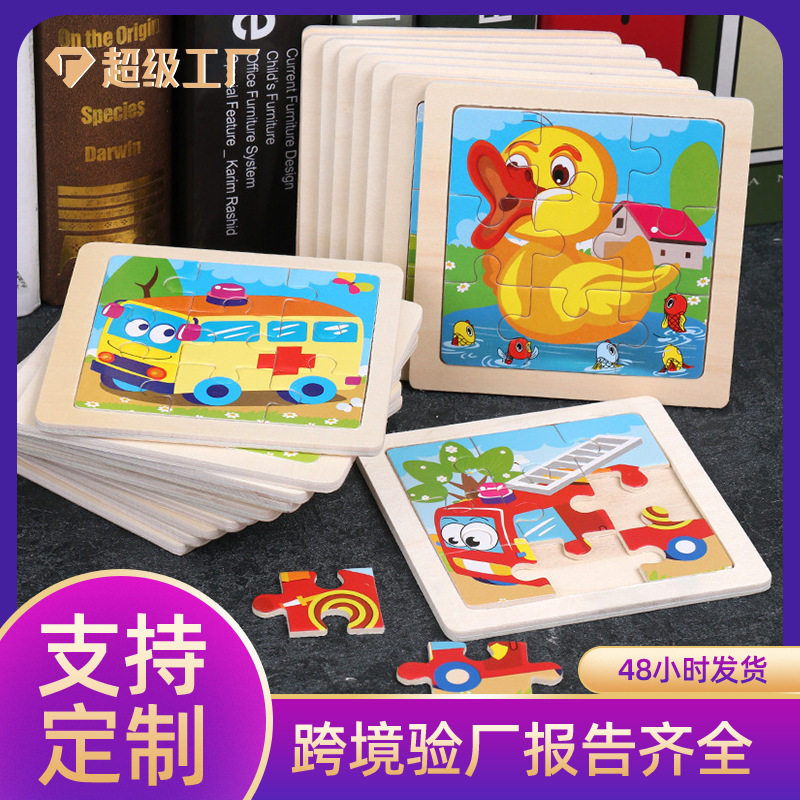 1-3岁木制益智玩具卡通动物九块木制拼图训练专注力早教积木