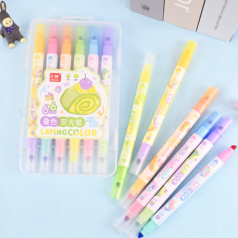 12色叠色荧光笔双头