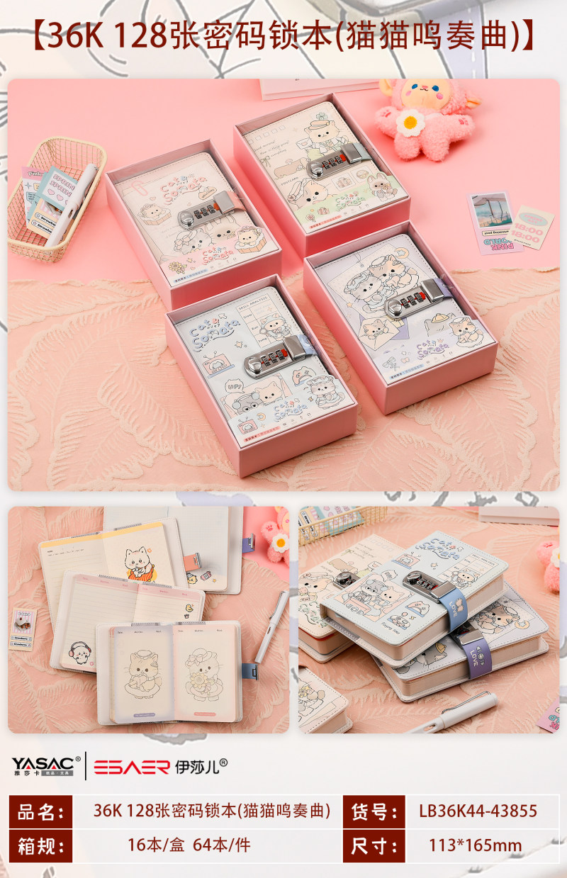 36K 128张密码锁本(猫猫鸣奏曲)LB36K44-43855