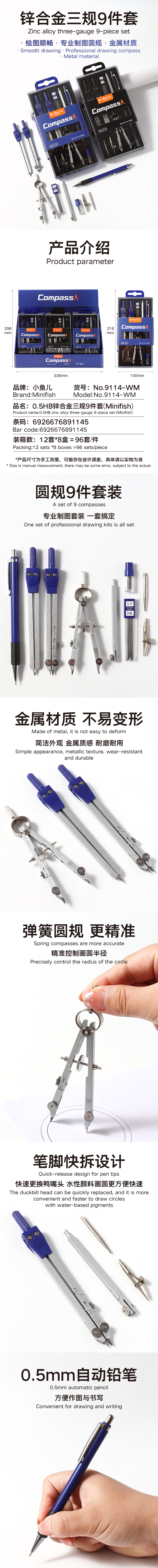 9199-WM 蓝黑两色夹铅笔套规8件套