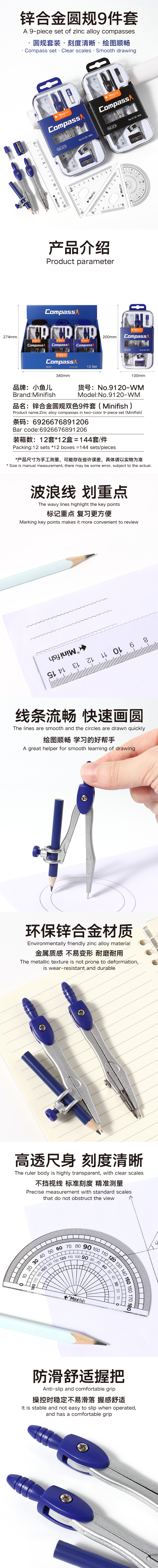 9199-WM 蓝黑两色夹铅笔套规8件套
