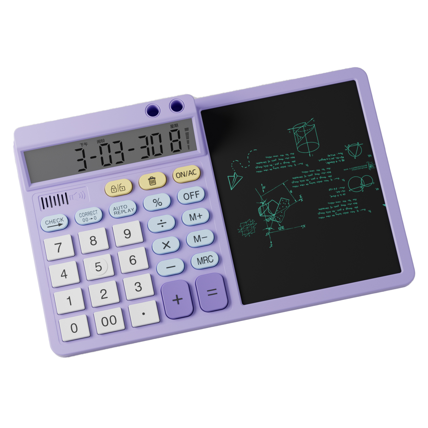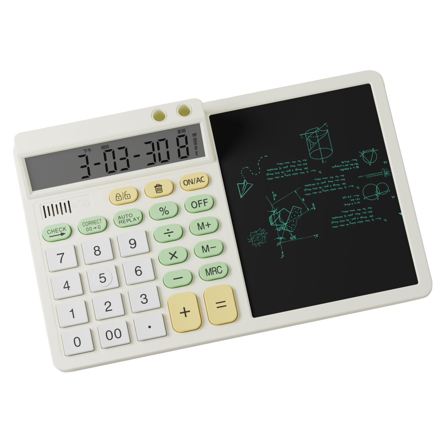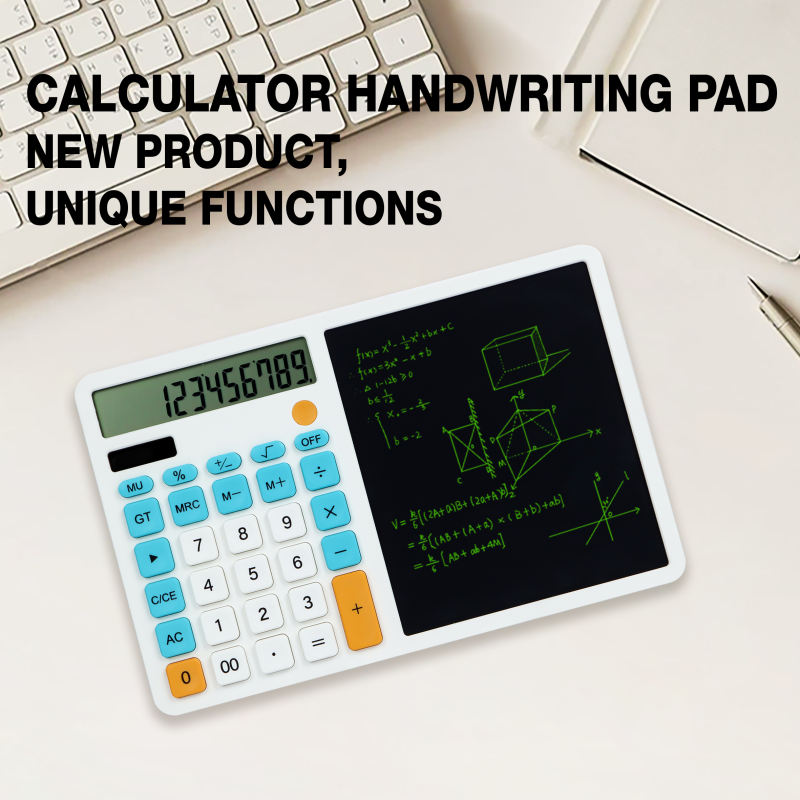 2、一边计算,一边手写记要点,计算器+手写板二合一超实用!大按键不按错,一键清屏反复用,双电源续航稳,办公、生意对账、学生做题都适配~ 告别纸笔杂乱,效率直接拉满!
