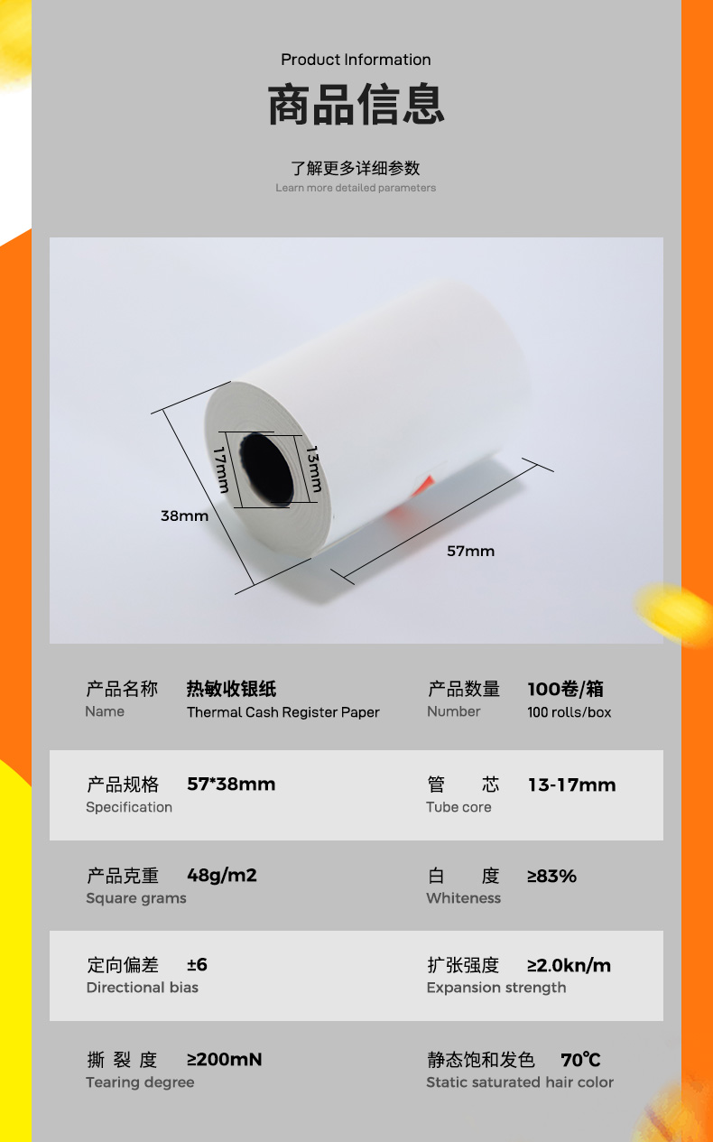 57mm热敏纸收银纸57*38商场超市用小票纸57x38餐饮外卖收银打印纸