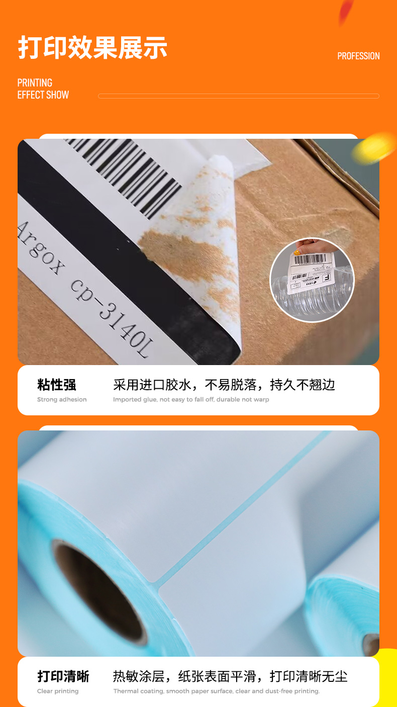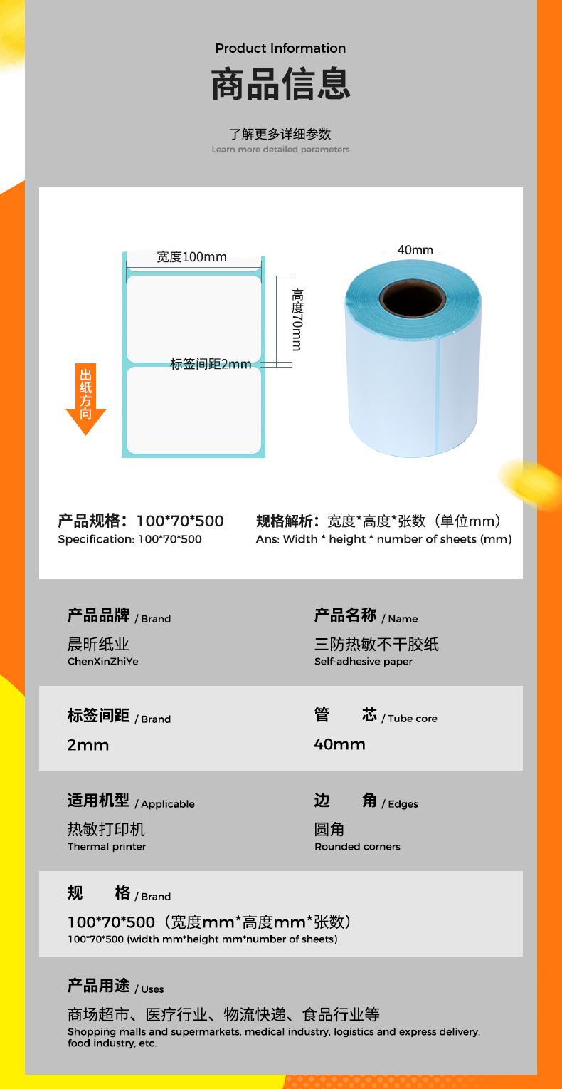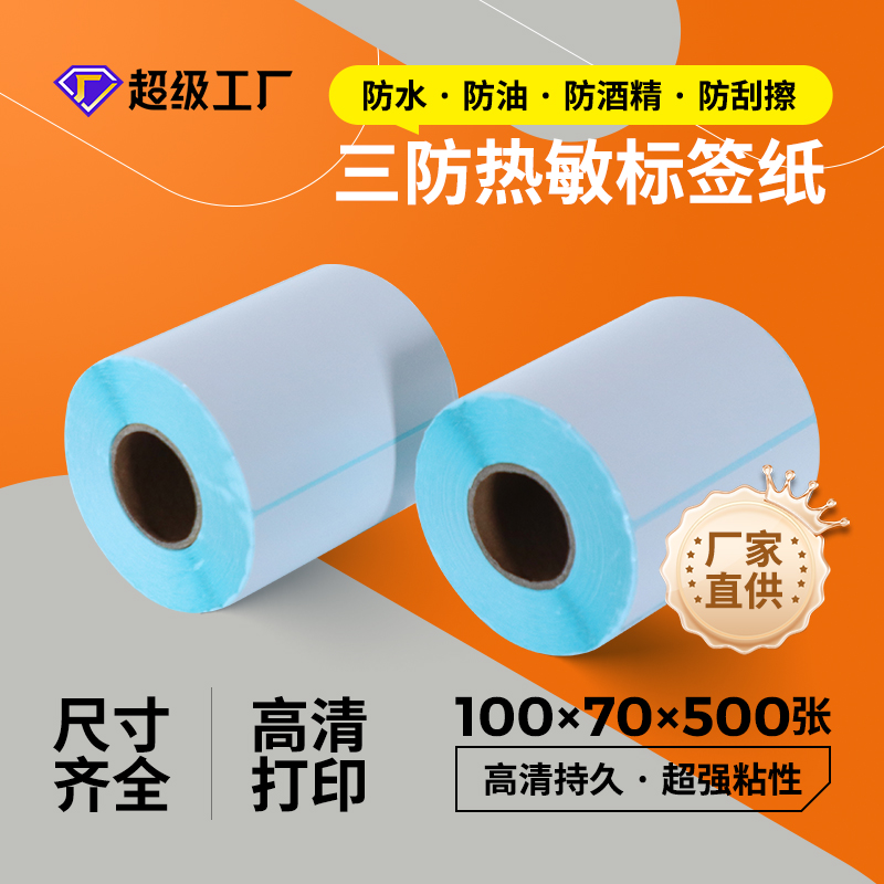 超市货架三防标签纸100x70x500热敏不干胶打印纸物流面单条码贴纸