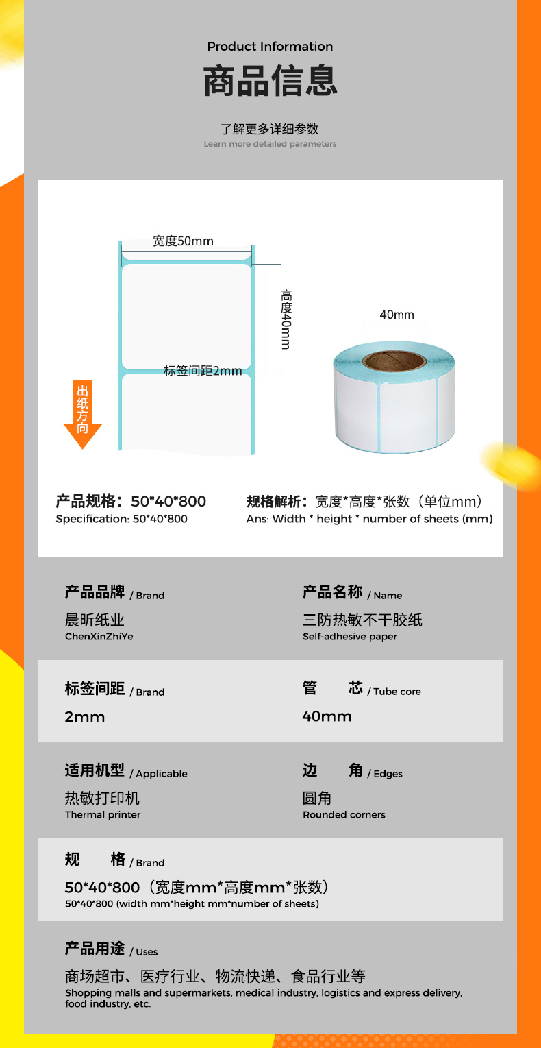 三防热敏纸50x40x800电子面单纸超市条码标签纸不干胶打印纸批发