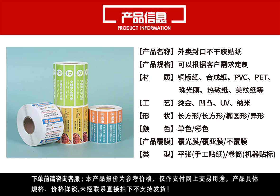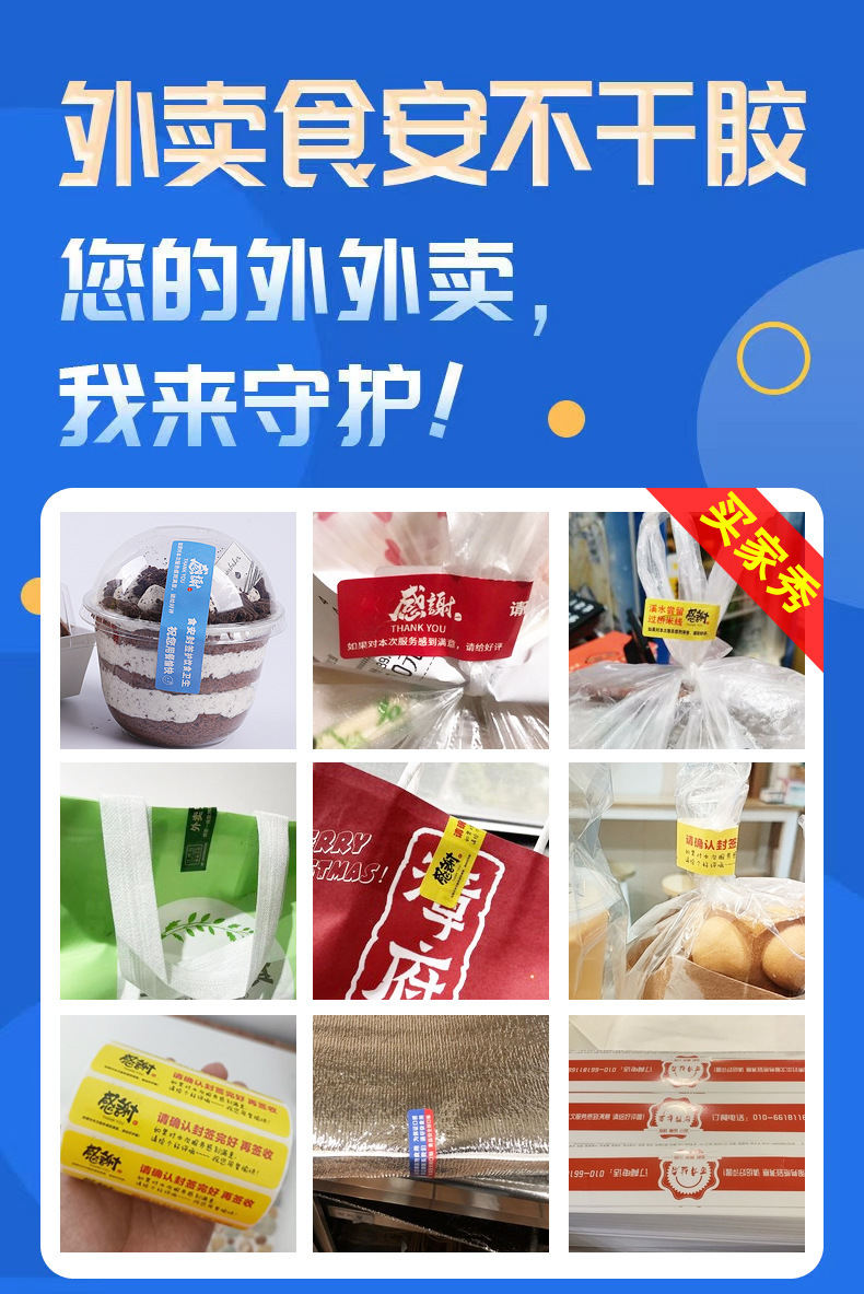 外卖封口贴不干贴食品打包防拆贴纸餐盒密封贴
