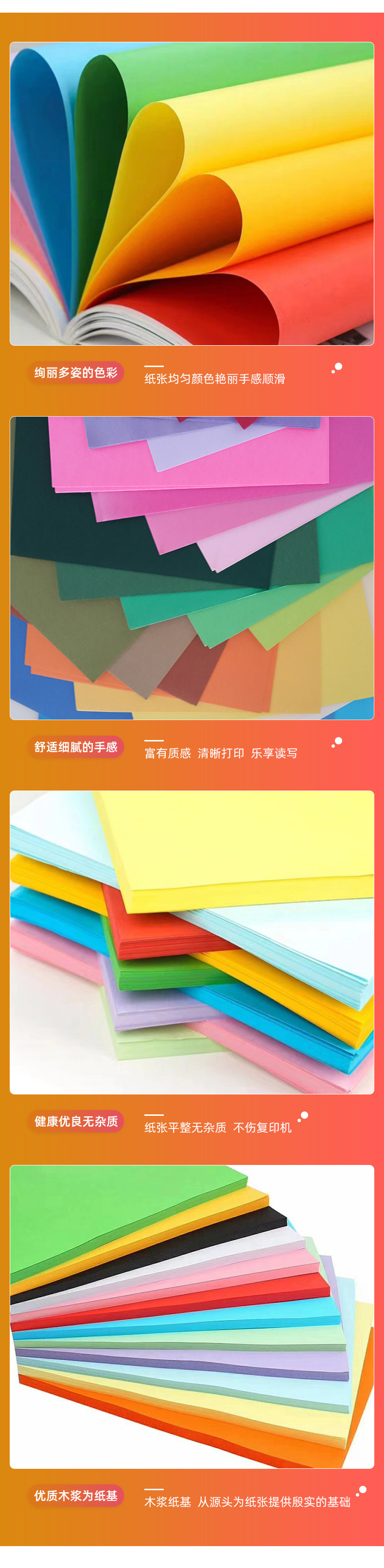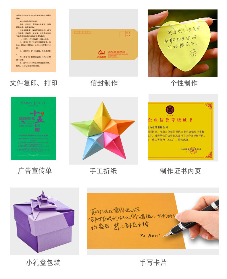 A4彩色复印纸手工折纸办公彩色打印纸70克多用途100张/包