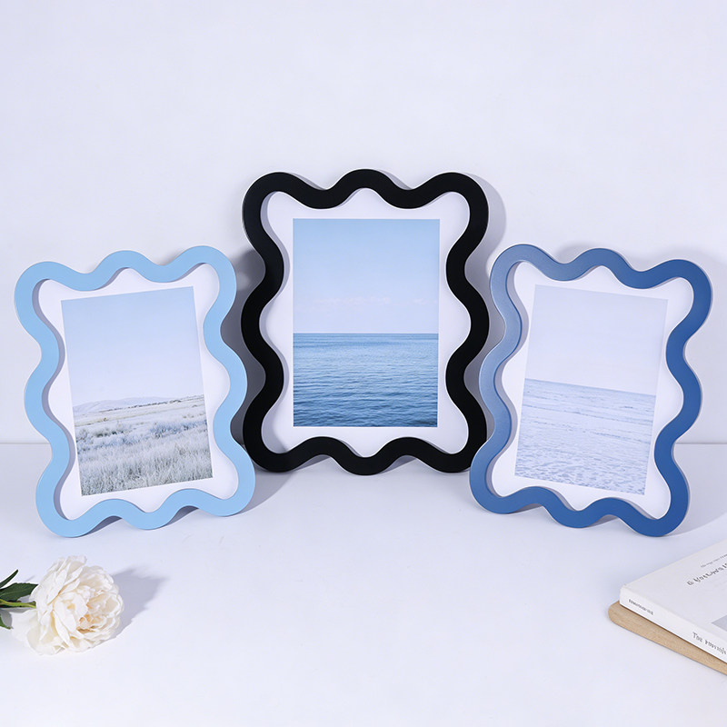 北欧极简马卡龙色波浪木质相框卧室客厅装饰品厂家批发摆挂两用